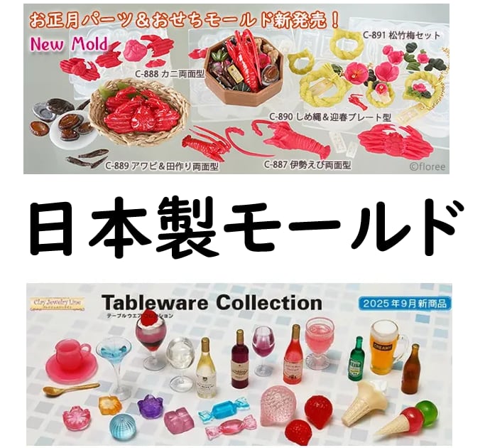 【 アワビ&田作り両面型3サイズ】 おせちシリーズ/モールド/ミニチュア/アワビ/ 樹脂粘土をはじめとする自然乾燥粘土、オーブン粘土、UVレジンなどでご使用頂ける便利なシリコーン型です。 お節料理のあわび、田作りのモチーフがそれぞれ3サイズのミニチュアで手軽に再現できます。 ★シリコーン製オイルブリードタイプ 硬さ(デュロメータA):40切断時伸びパーセント:350 ★使用できる回数 材質はオイルブリードのシリコーンになります。 離型剤が混入しているシリコーンですので、抜くときに離型剤を塗る必要がありません。 ただし材料によっては無制限に抜けることはありませんので、ご理解ください。 レジンなどの化学変化して硬化する物は10〜20個程度で中のオイルが出てしまいますので、それ以降は離型剤が必要になります。 おおよそ30〜40回程度で使えなくなります。最後はレジンがくっついて離れなくなります。 経年変化によって無限には使えません。 *色々なメーカーがUVレジン・2液混合レジンを発売していますが中には溶液がとても強く、型を数回で痛めてしまいシリコーン型との相性の悪いレジン商品もございます。 ★保管方法 日の当らないほこりがしない場所に保管してください。 ご使用後は子供など手の届かない場所で保存してください。 オイルが混入していますので、子供が間違って口の中に入れた際には、 よくうがいしたのち必要があれば医師の診察を受けてください。 【当デザイン型に関するご注意】 ※シリコーン系素材、レジンにはご使用いただけません。 ※自然乾燥粘土以外の素材につきましては化学変化に伴う耐用限界があります。 ※画像の抜きサンプル(パーツ)は作品例です。製品に含まれておりません。 ※原型研磨や型取りの過程で外側やパーツ以外の場所で微細な傷が生じる場合がありますが、検品済みで、作られるパーツ自体の使用には問題ありません。 仕上がりサイズ(約): アワビ 15.6×11×6/ 14.5×10×4.5/ 9×6.2×3.2mm 田作り 15×2.8/ 12×2.4/ 10×2mm モチーフ1つに必要なおおよそな粘土量(約): アワビ 0.6g/0.4g/0.2g 田作り 0.1g/0.1g以下/0.1g以下 材質:シリコーンゴム JAN:4571239803817 C-889