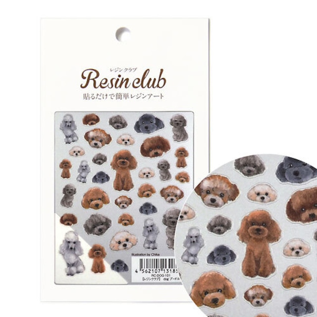 【dog プードル】1枚 両面シール/レジン/封入/レジンクラブ 人気のふわもこプードルがレジン専用シールになりました。 ◆ シールの特徴 ◆ ・レジンの中に入れたり、外側にはったりすることが出来ます。外側にはる場合はコーティングをしてください。 ・レジンに埋め込むと透明感あるデザインが出来上がります。 ・国産品 ・このシールは極薄の素材を使用しています。 ・粘着力が強いためシールがはがれにくい素材になっています。ピンセットをご利用してください。 ・パッケージサイズ 88mm×150mm、シートサイズ 88mm×110mm RC-DOG-101