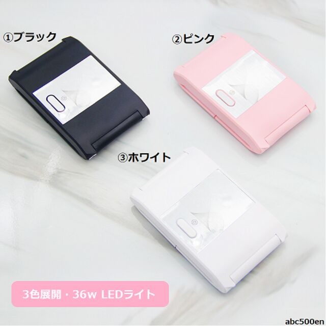 【36WUV-LEDコンパクト USBタイプ】 レジン/LED/ランプ/USBタイプ/ 当店オススメ!レジンを始めるならこれ!! コンパクトサイズの 36WLEDライト! 36w以上のランプを使うことで、しっかり硬化。 折りたたんでコンパクトに収納ができ、かさばらない大きさ。 折りたたんだ状態で縦:11.5cm×7.3cmの大きさ!! 3面からライトがあたるので全体にランプたあたります。 ランプのお色は3色からランダムになります。 ブラック・ピンク・ホワイト *お色を選ぶことは出来ません。 *説明書・保障はありません。