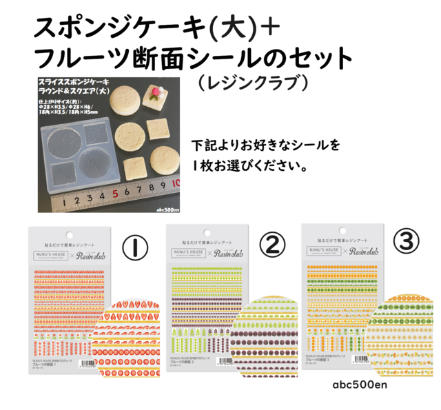 スポンジケーキ(大)+フルーツ断面1枚のセット レジンクラブ/モールド/フルーツケーキ/シール/ケーキ
