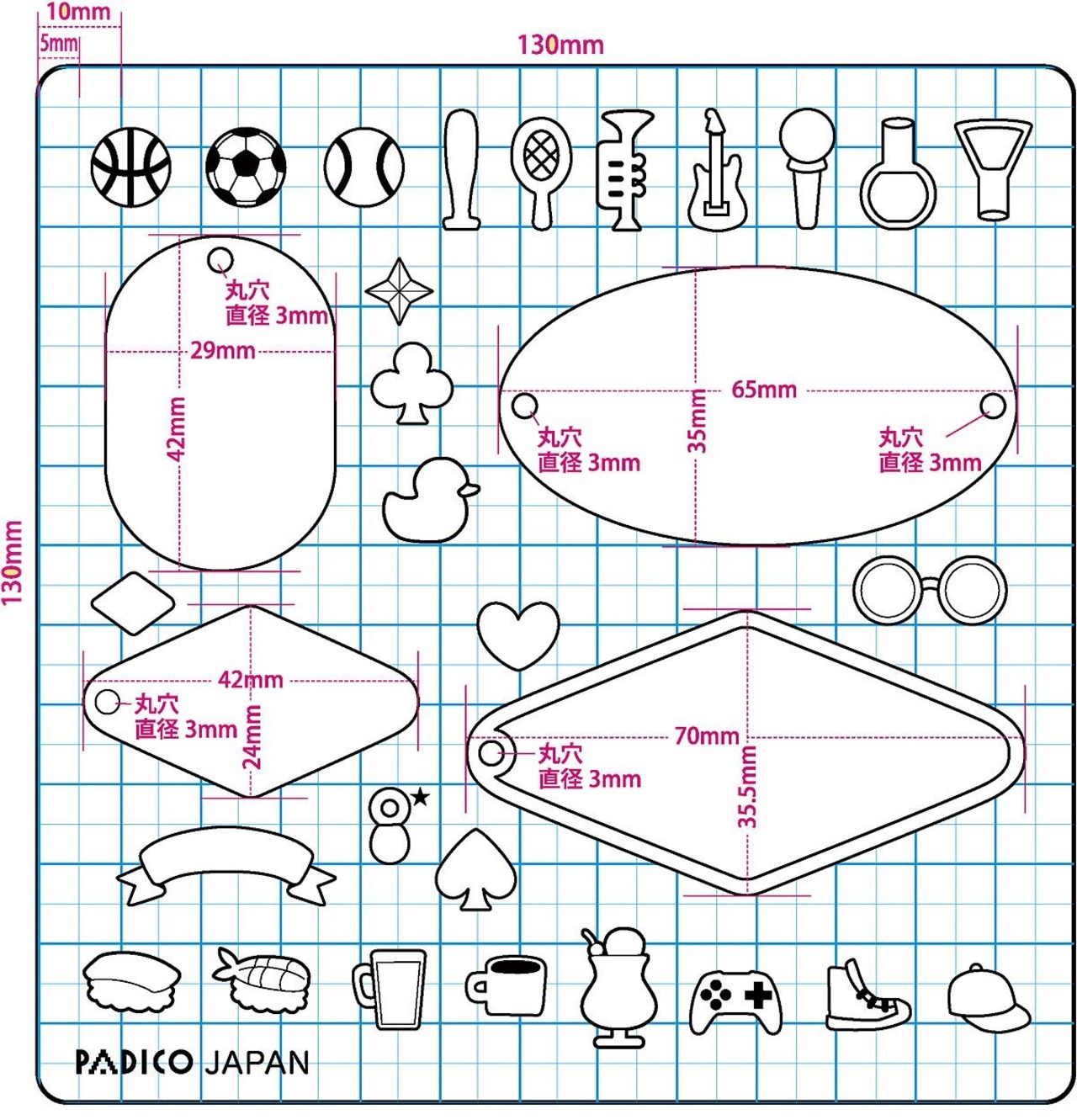 シンプルな楕円やひし形プレートが4種類とスポーツや楽器などの趣味系のパーツが27種類が揃っています。