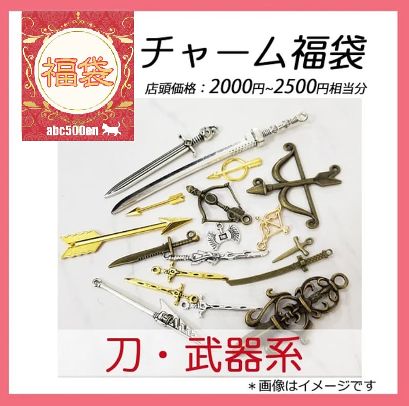 予約商品【2026年abc500en福袋】パーツ福袋「王冠・鍵系」「刀系」「銃系」「ダーク系」/ミール皿/フレーム/チャーム/レジン資材