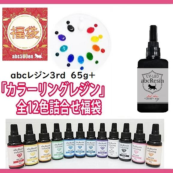 【2026年abc500en福袋】カラーリングレジン(着色レジン12色)と3rdレジン65gクリアのセット/レジン/レジン資材/著色剤