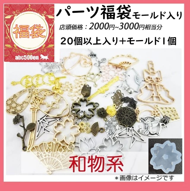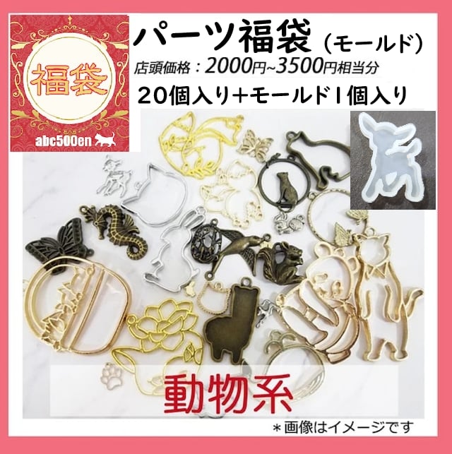 【2026年abc500en福袋】パーツ福袋+モールド付き「宇宙系」「和物系」「化学系」「動物系】「メルヘン・童話」 20個以上入り/フレーム/ミール皿/チャーム/レジン資材