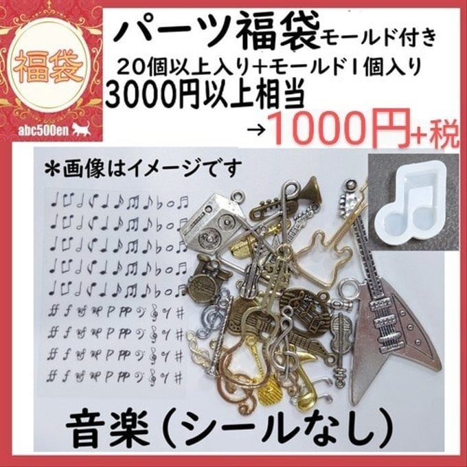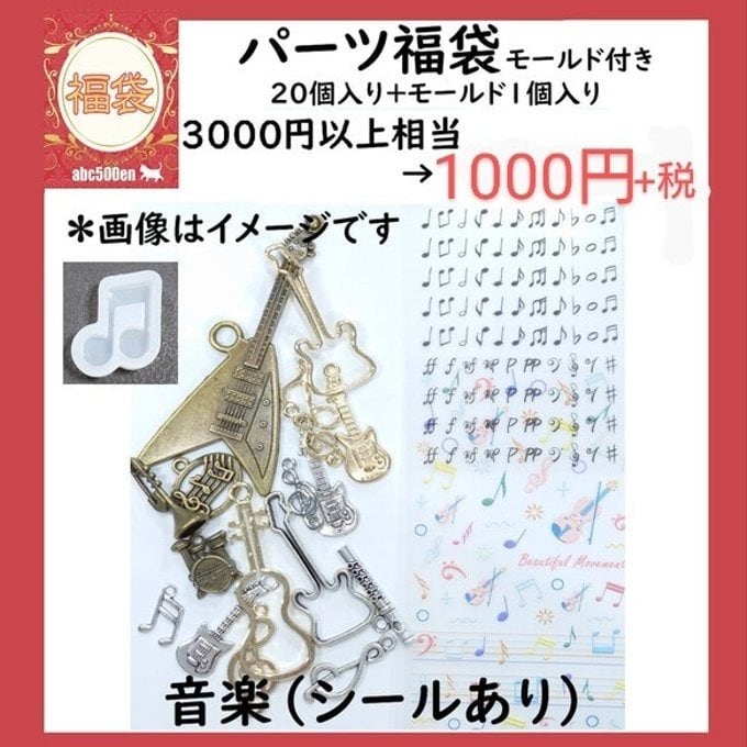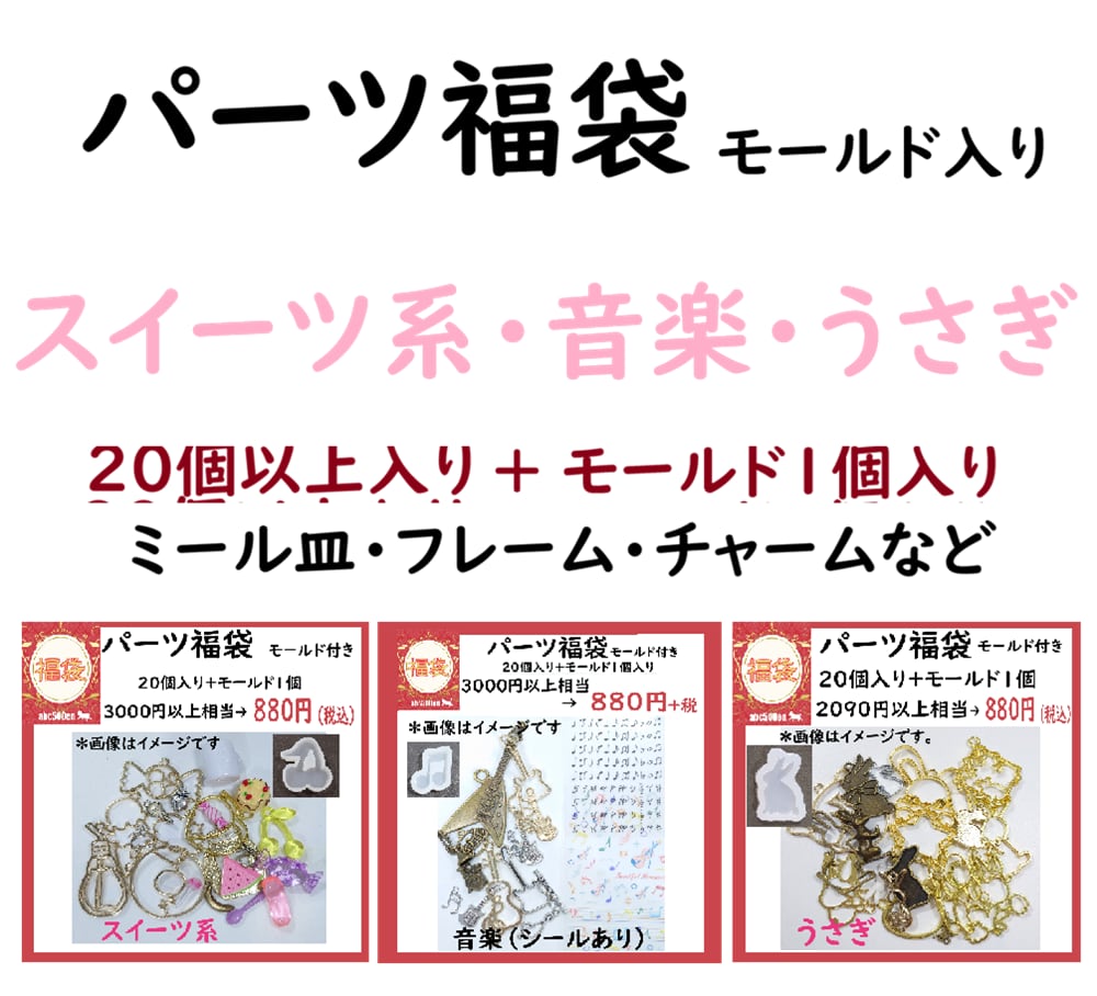 【2026年abc500en福袋】パーツ福袋モールド付き「スイーツ系」「音楽」「うさぎ」/フレーム/ミール皿/チャーム/レジン資材