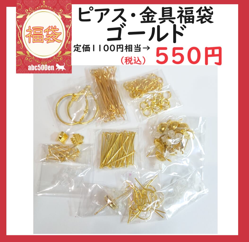 予約商品【2026年abc500en福袋】ピアス・金具福袋「ゴールド」ピアス/金具/レジン資材/アクセサリー金具/