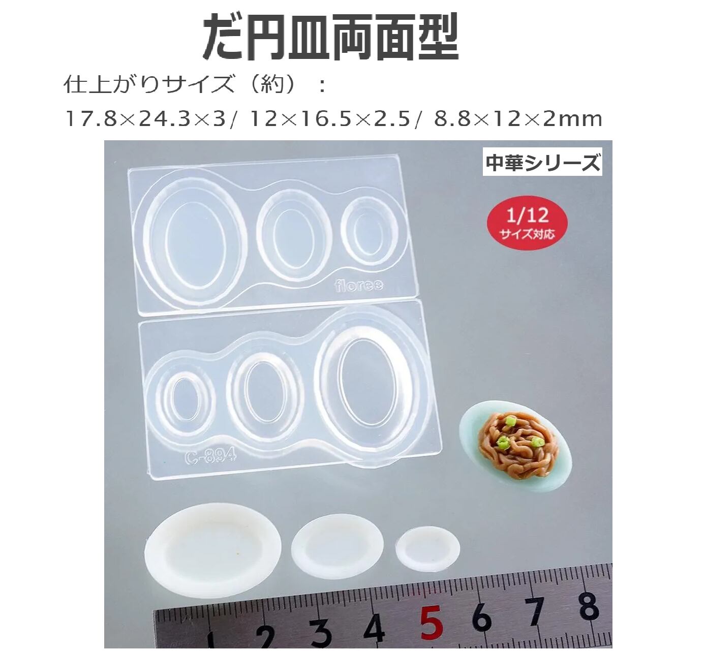 【だ円皿両面型】中華シリーズ/ 1/12サイズ対応/モールド/中華飯/ミニチュア/だ円皿
