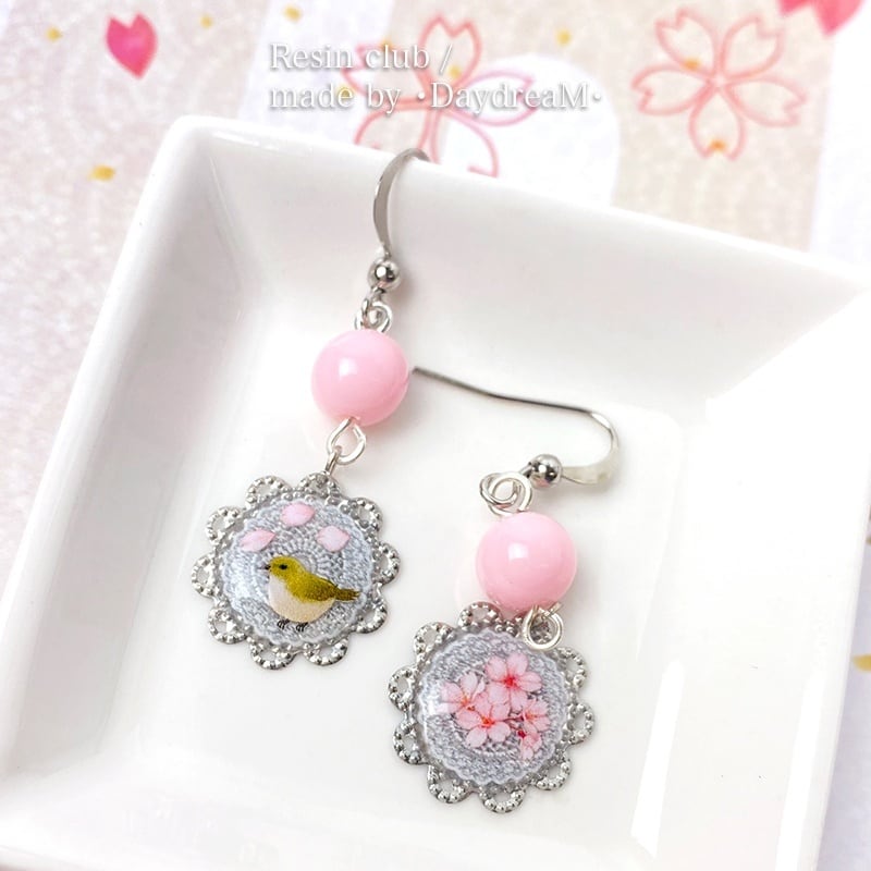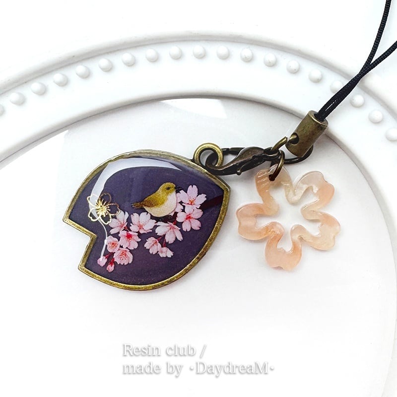 【桜とウグイス】両面タイプ/レジンシール/封入/桜/ウグイス/春