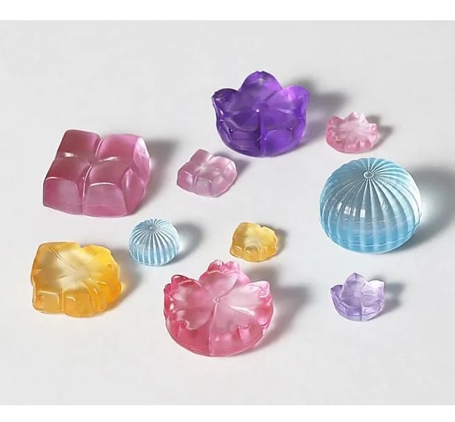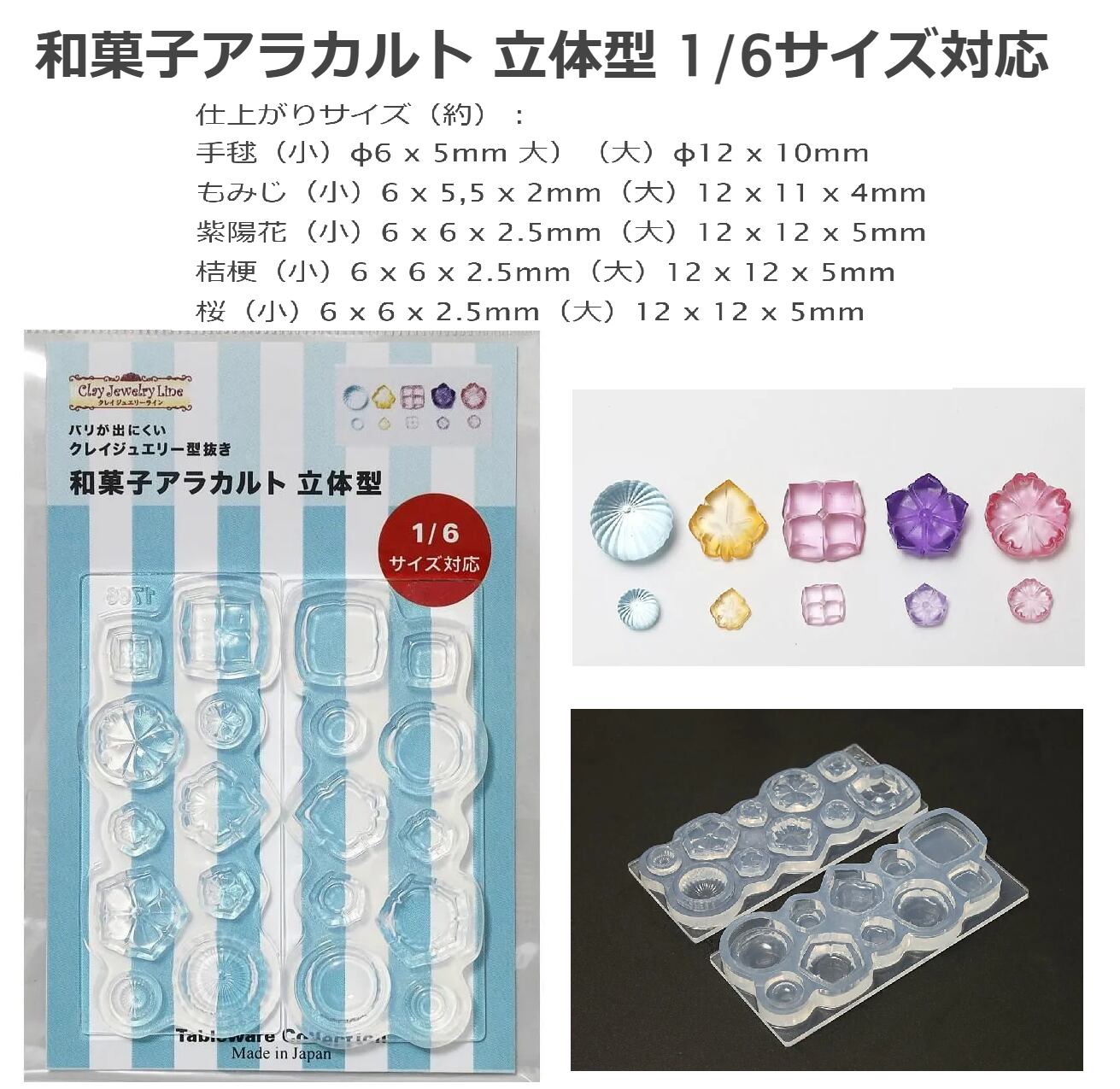 手まり・紅葉・あじさい・ききょう・さくらモチーフの和菓子がミニチュアサイズで作れます。