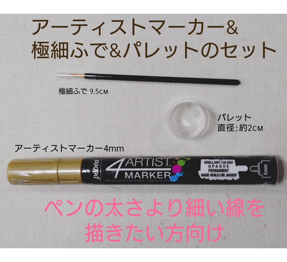 4mmアーティストマーカー 1本&極細ふで&パレットのセット /4ARTIST MARKER/ペン/レジンペン/細い線を書きたい人/不透明マーカー!