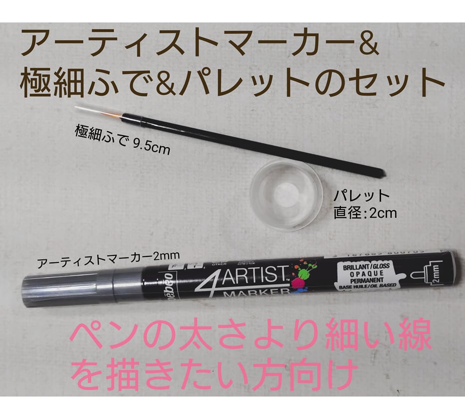 2mmアーティストマーカー 1本&極細ふで&パレットのセット /4ARTIST MARKER/ペン/レジンペン/細い線を書きたい人/不透明マーカー!