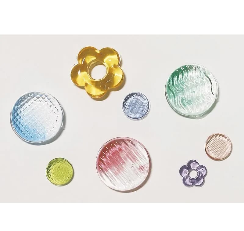4種類の形状のおはじきモチーフがそれぞれ2サイズで作れます。
