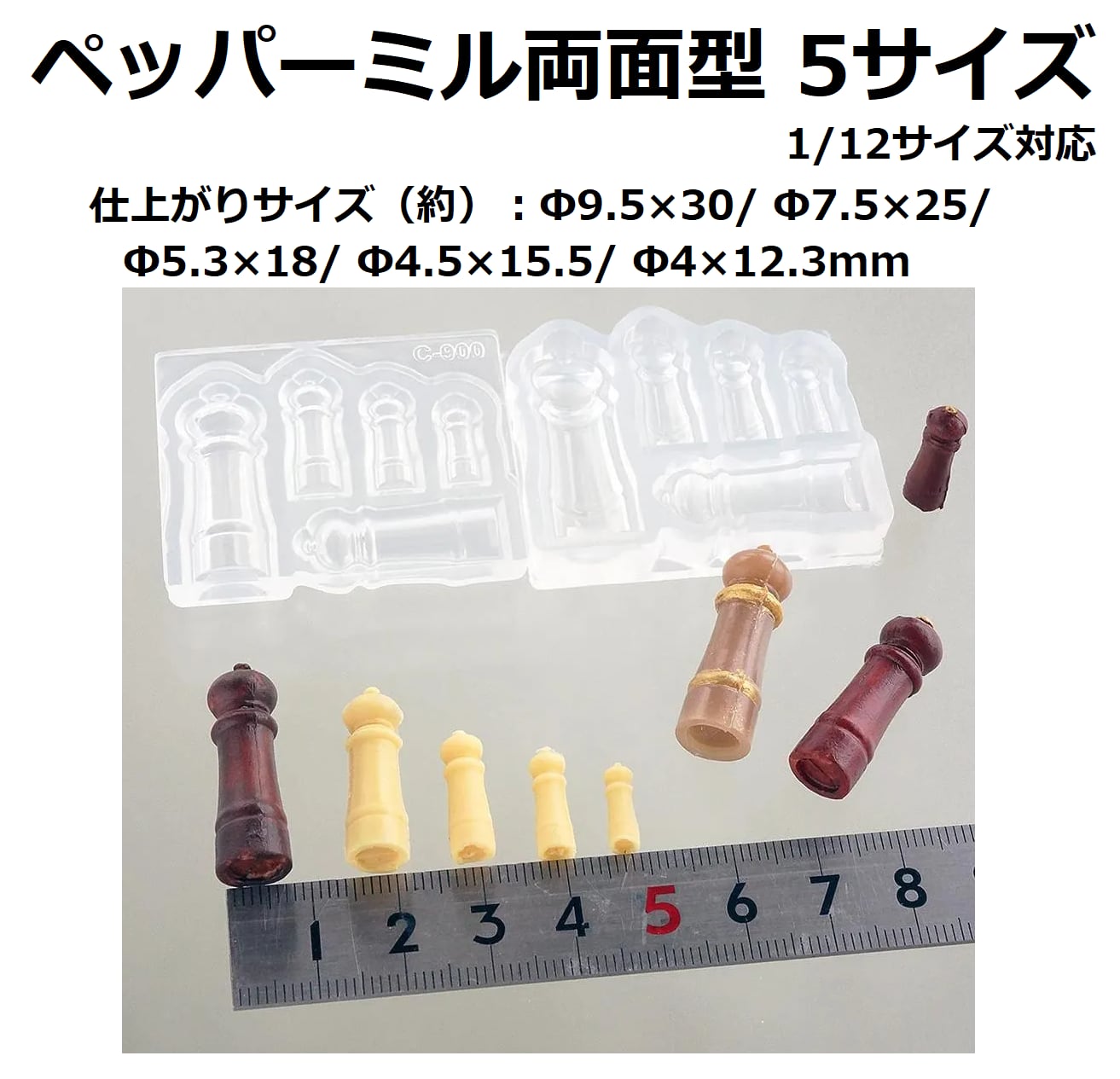 予約商品【 ペッパーミル両面型 5サイズ】 1/12サイズ対応/レジン専用/モールド/ ペッパーミル/立体型