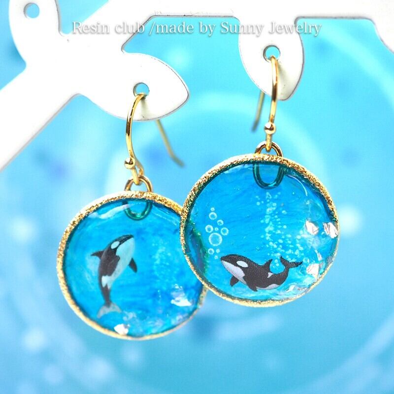 【シャチ】両面タイプ/レジンシール/封入/シャチ/海/風景/マリン