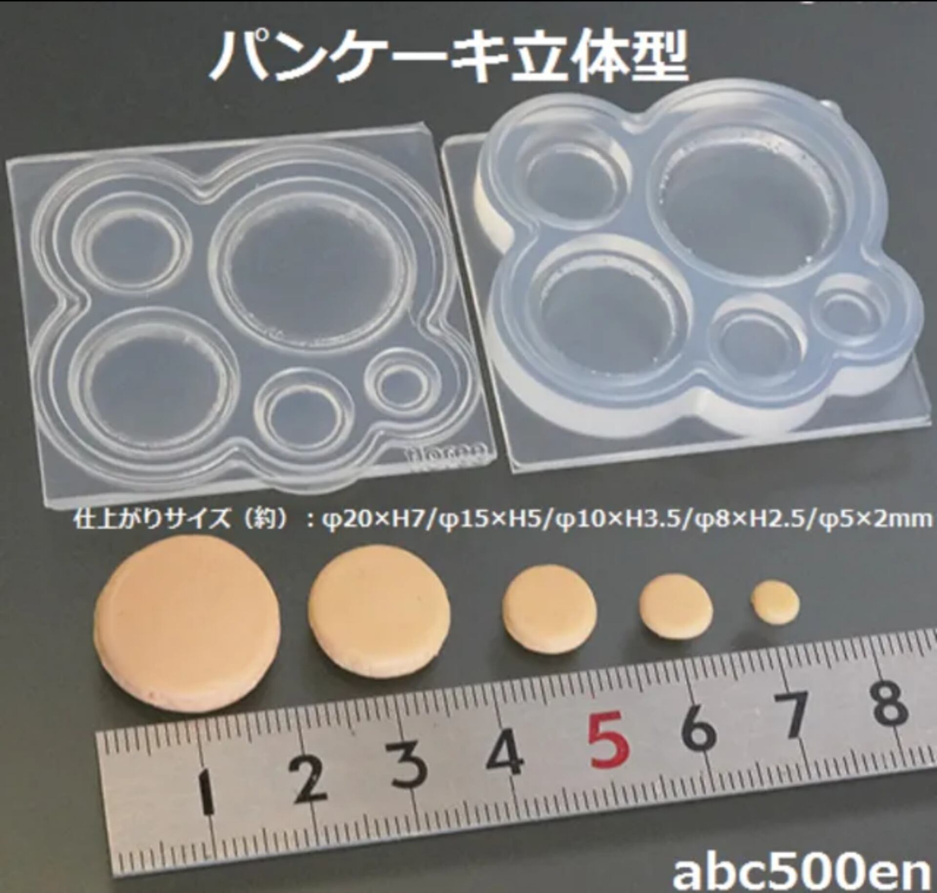 5サイズのリアルなパンケーキのミニチュア立体型モチーフが作れます。