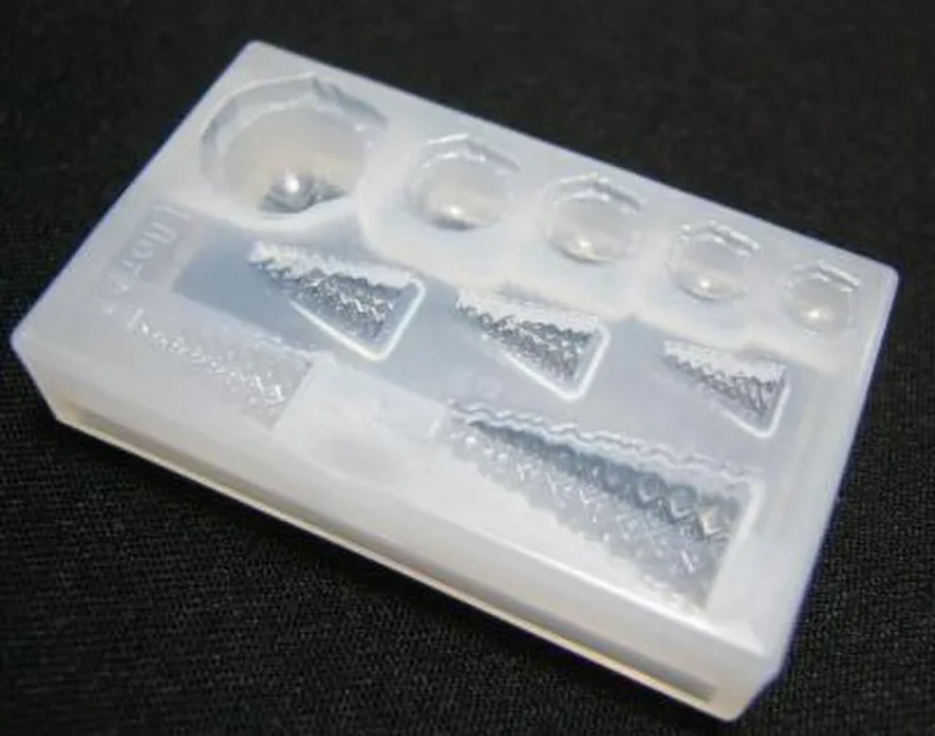 クリアタイプシリーズは型に柔軟性があり紫外線を通す半透明素材を使用していますので、通常の自然乾燥で硬化する粘土のほか銀粘土、レジン、アクリルパウダー、UVジェル、発泡ウレタン、オーブン粘土など化学変化によって硬化する素材にもご使用いただけます。
