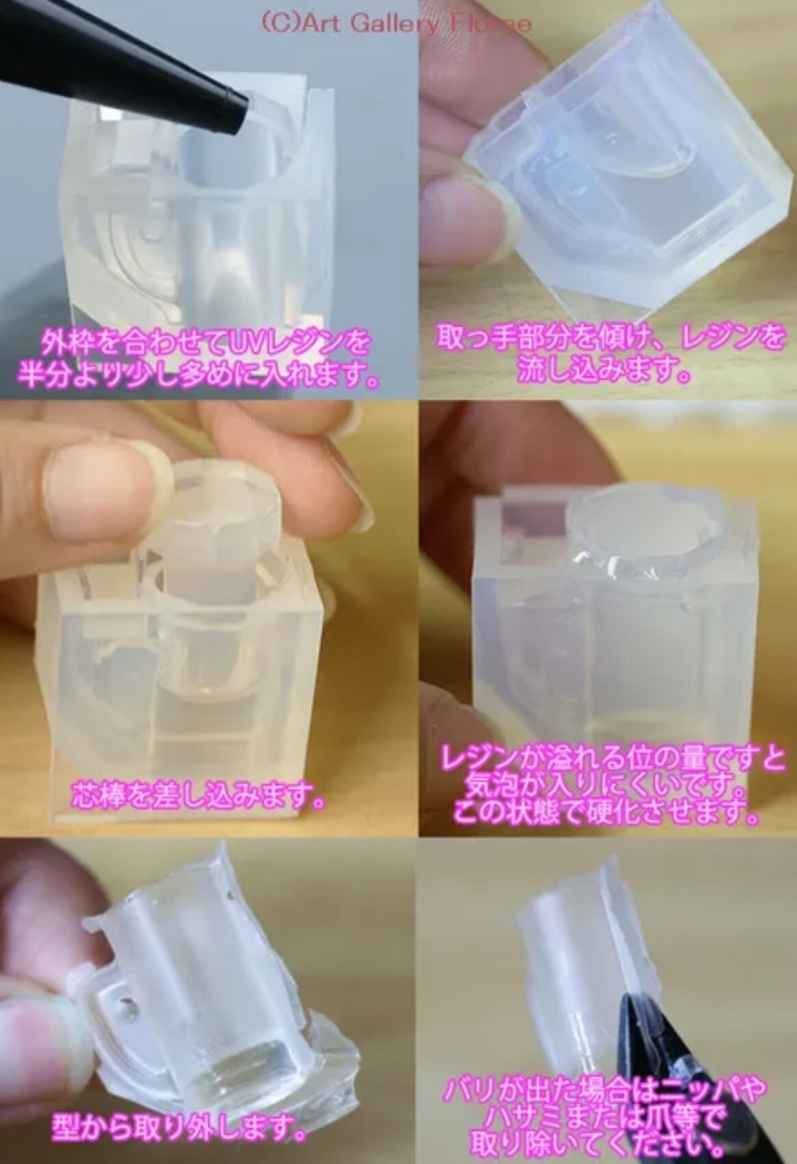 ※レジンなどの化学変化を伴う素材は20~30回程度で使用できなくなります。シリコン材は硬化時に同化するためご使用いただけません。