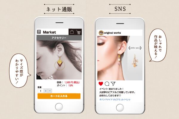 デザインスペース付は、屋号を印刷できるスペースがあります。A4サイズなので印刷も可能! また、左右が違うデザインやカラーバリエーションなど複数のアクセサリーを並べられます。