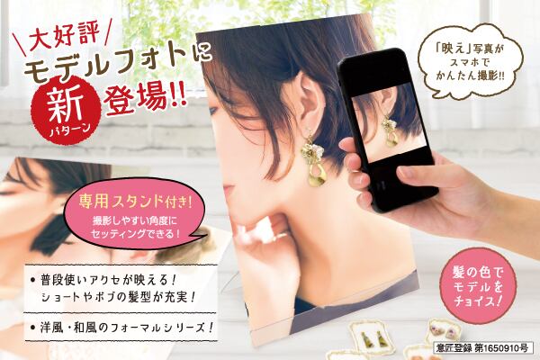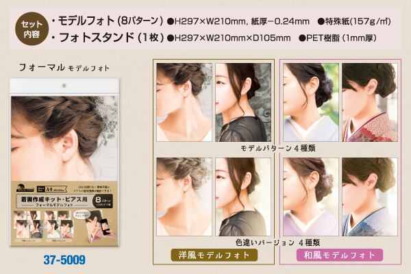 8パターンのモデルフォトとA4サイズの専用フォトスタンドが付いたセットです。