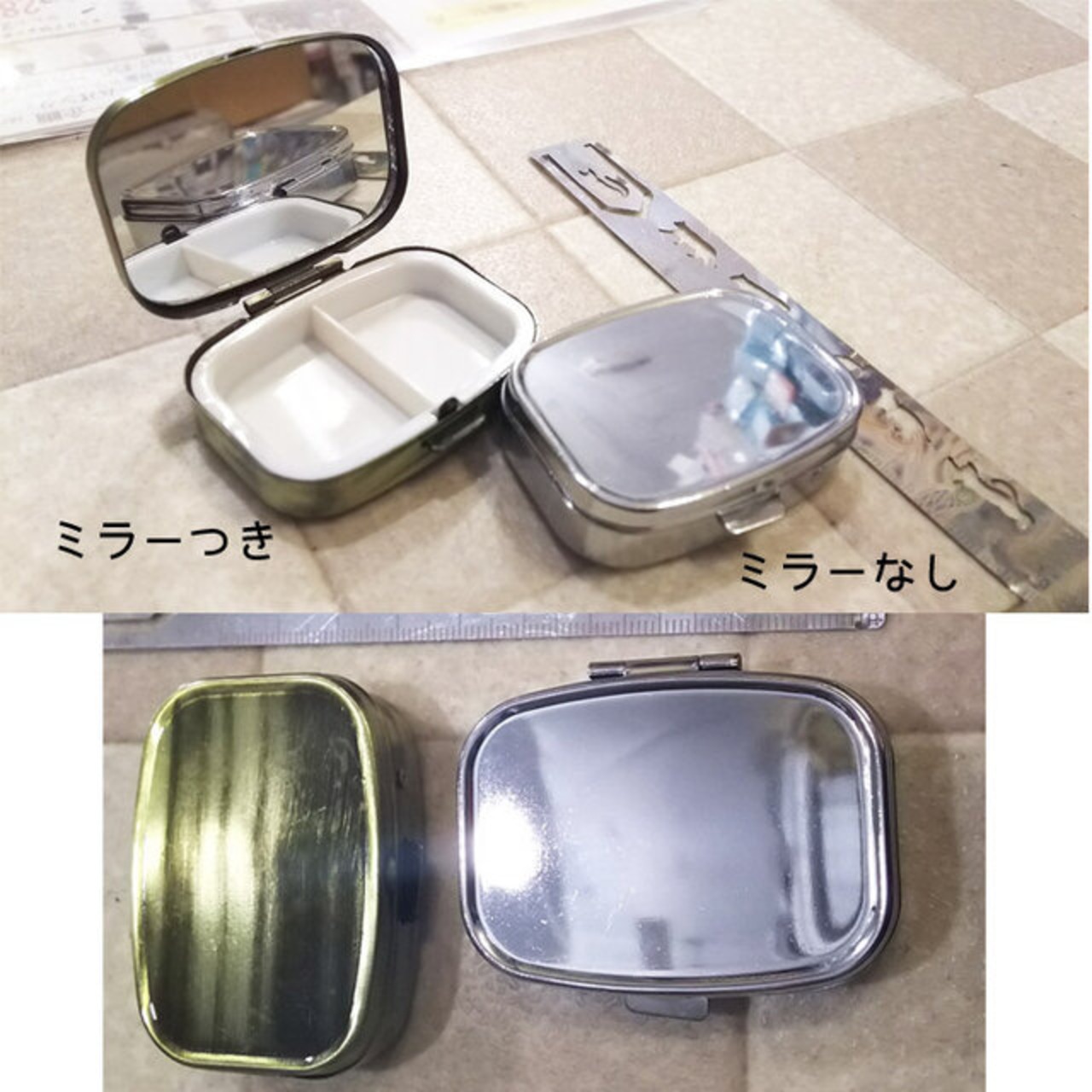 切れるミラーを使ってミラーありのピルケースを作ることができますよ♪