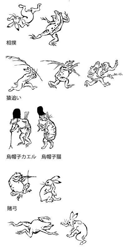 鳥獣人物戯画(鳥獣戯画)は、高山寺に伝わる紙本墨画の絵巻物。国宝。12世紀 – 13世紀
