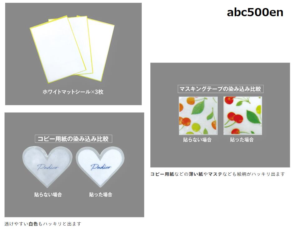 透明フィルムなどの裏面に貼ることでフィルムが真っ直ぐになり、透けずに絵柄や白色がハッキリ出ます。