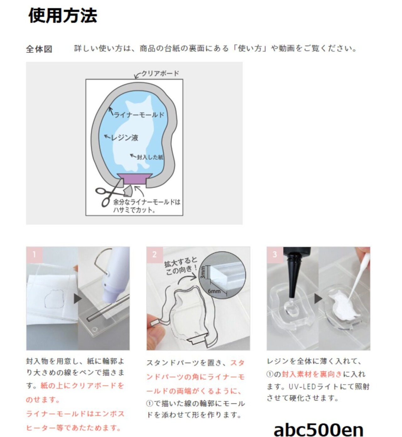 ・使用できる素材:UV-LEDレジン/2液性エポキシレジン/各種粘土