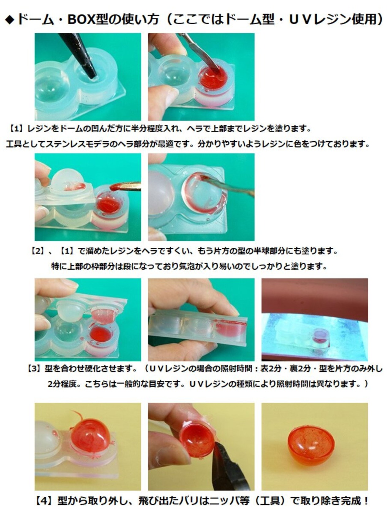 薄いため硬化時にシワになることが無く、また完成したボックス型にレジンを流し込んでも割れることなく硬化できます。