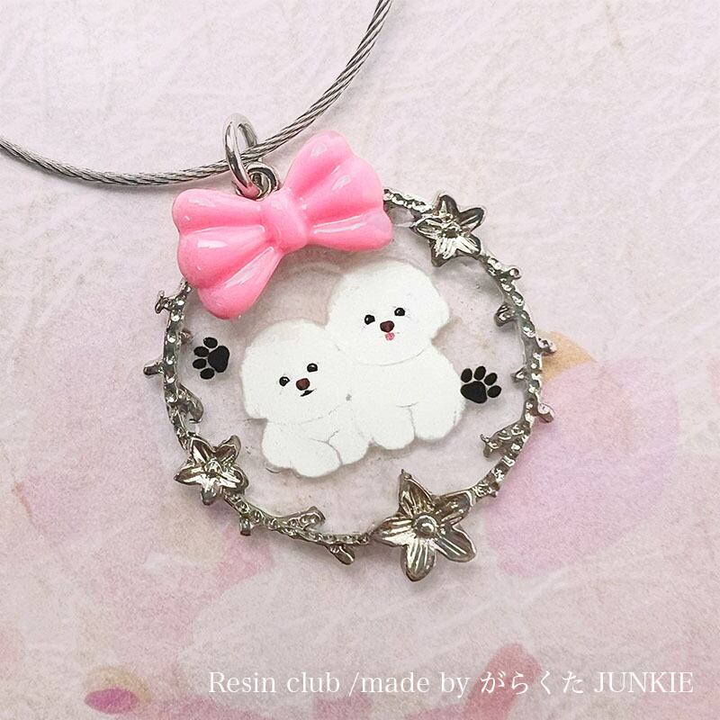 ビションフリーゼ同士をくっつけたり、ポイントでリボンをつけたり、アレンジを楽しんでください。