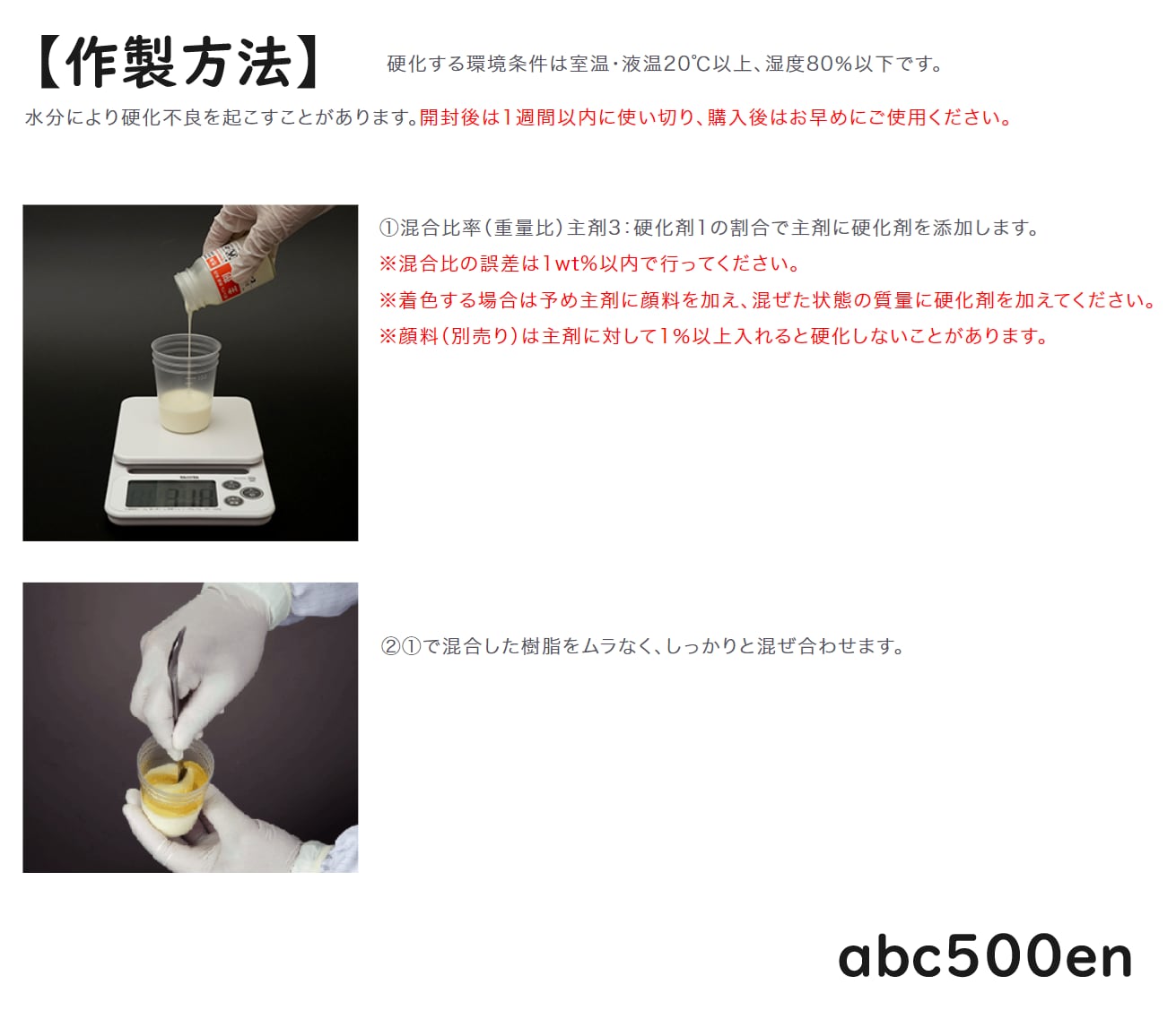 着色する際は別売りの専用顔料をご使用いただき、添加量は主剤の重量比1%でご使用ください。