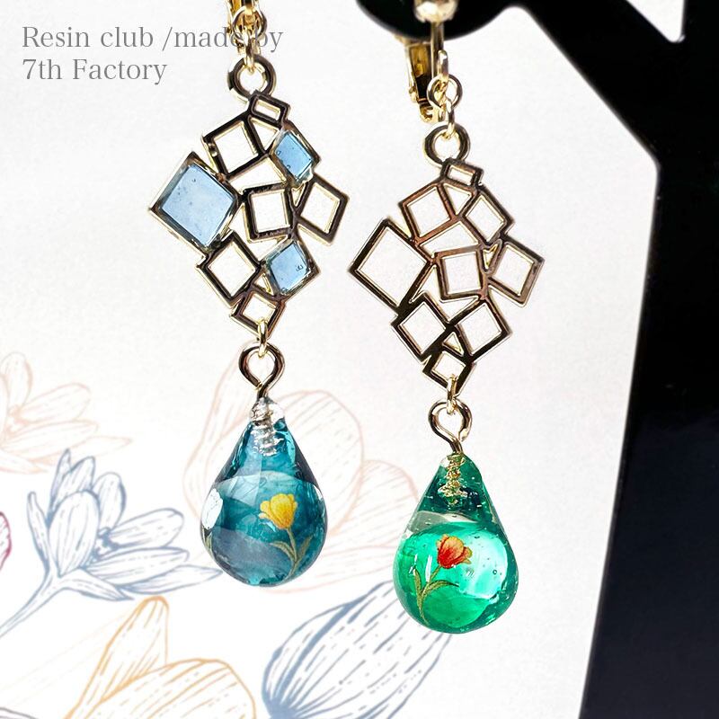 レジンに埋め込むと透明感あるデザインが出来上がります。