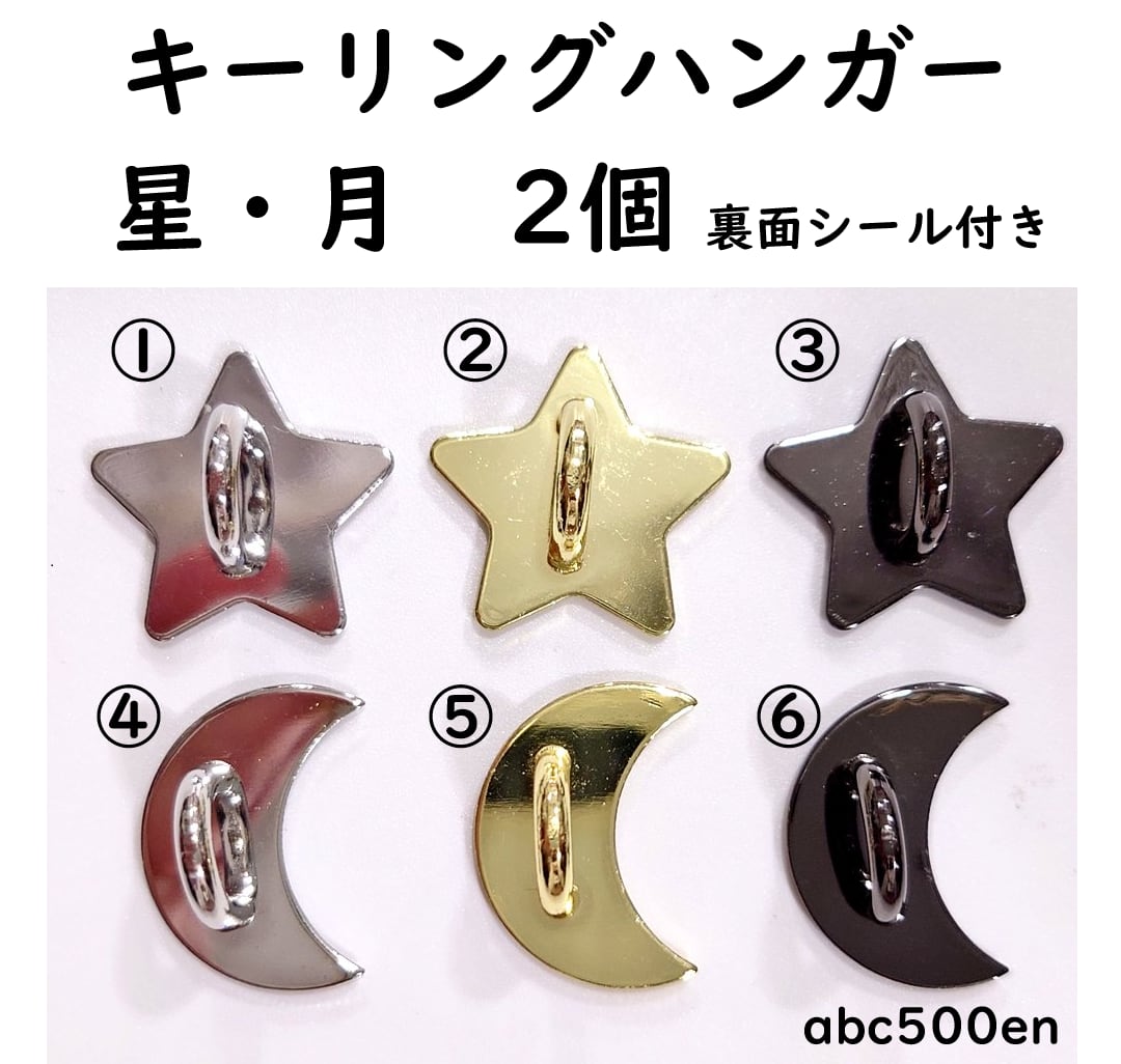【キーリングハンガー 星・月 2個】シール付き/ゴールド/シルバー/ブラック/スマホ小物/星/月